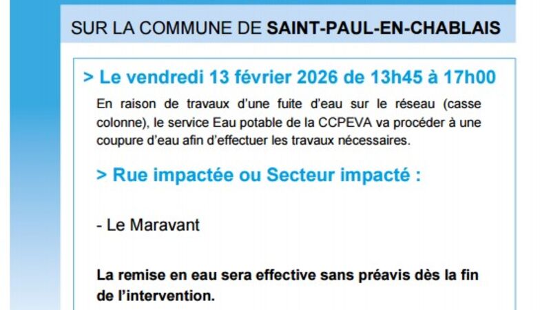 ATTENTION COUPURE D'EAU POTABLE