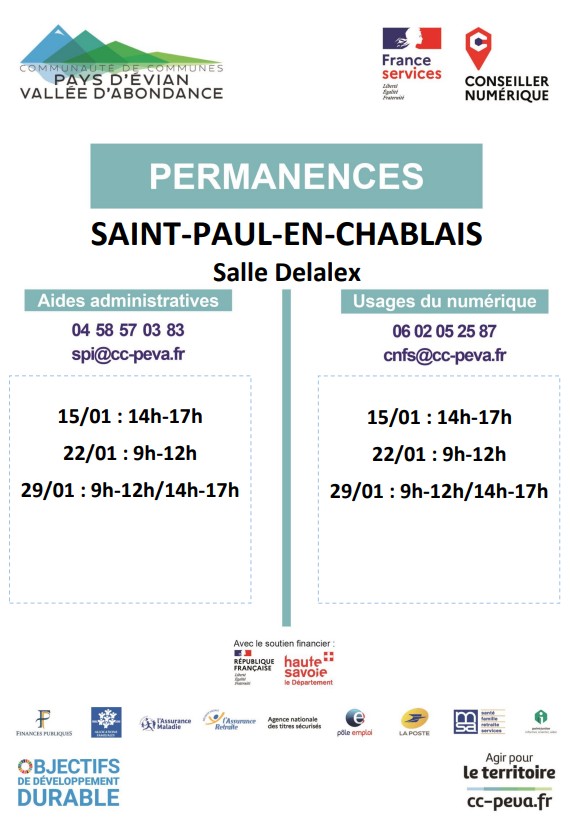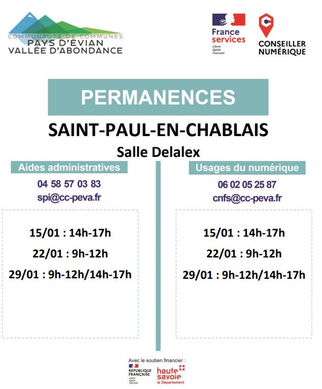 Les permanences ont lieu, sans rendez-vous, chaque 1er lundi du mois de 14h à 16h au CCAS d’Évian.