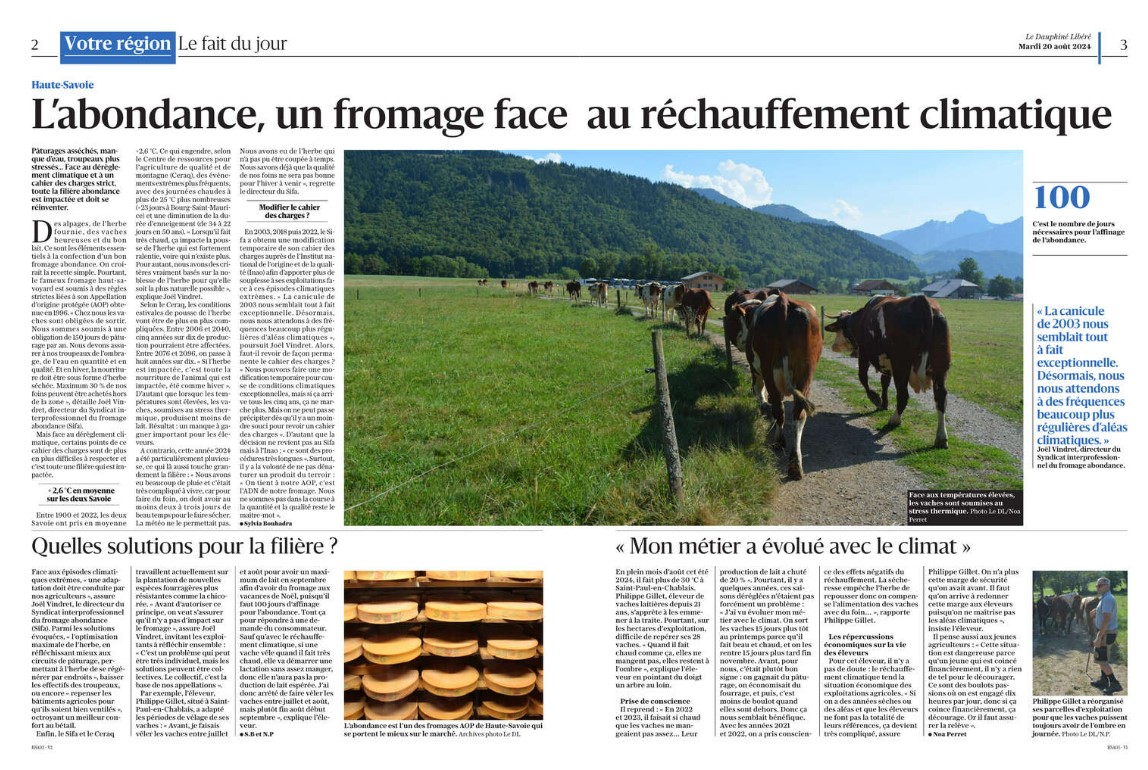 Dauphiné Libéré du 20 août 2024 - L'abondance, un fromage face au réchauffement climatique