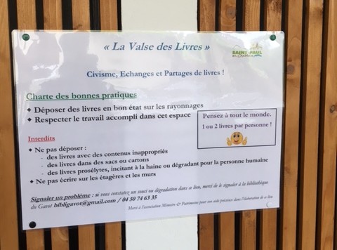 Pour rappel, la boîte à livres est un espace d’échange et de don destiné à offrir une seconde vie aux livres. Merci de respecter les bonnes pratiques décrites ci-dessus.