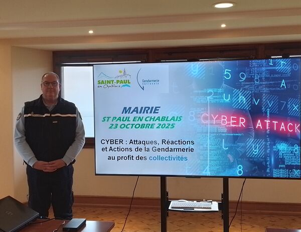 L'Adjudant-Chef Frédéric HALTER, Référent Cyber pour la Gendarmerie de Haute-Savoie, s'est déplacé en Mairie pour une Intervention sur la Cyberprévention et les responsabilités de chacun.