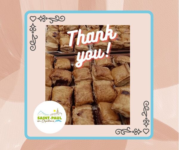 Merci à tous les bénévoles et enfants de l'école, à M. ASSIER et son alambic, les élus, les services de la commune, les associations : Saint-Paul en Fête, le FC Gavot, l'APE, Les Balades Acoustiques, Mémoire et Patrimoine, L'Echo de Gavot, Le Club de l'Amitié et la Gym de Saint-Paul ; la Bibliothèque du Gavot, l'Ecole de Musique Neige et Soleil, les Saltimbanques de Sabaudia, Les Chants Poulans, les Guincheux, le Père Noël, le Père Fouettard, René Dutruel et son expo et bien évidemment tous les commerçants, artisans, producteurs fidèles au poste ; sans oublier les services de sécurité et à la Croix-Rouge française – Unité locale du Chablais.