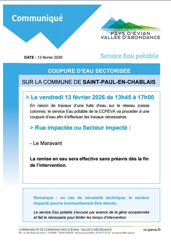 ATTENTION COUPURE D'EAU POTABLE