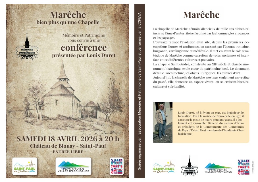 Située au carrefour de voies de communication très anciennes, Maraîche sert de lien entre le Léman et l’abbaye d’Abondance, préfigurant le territoire actuel de la communauté de communes. Le château de Blonay, à Saint-Paul-en-Chablais, est tout indiqué pour cette évocation historique et patrimoniale.