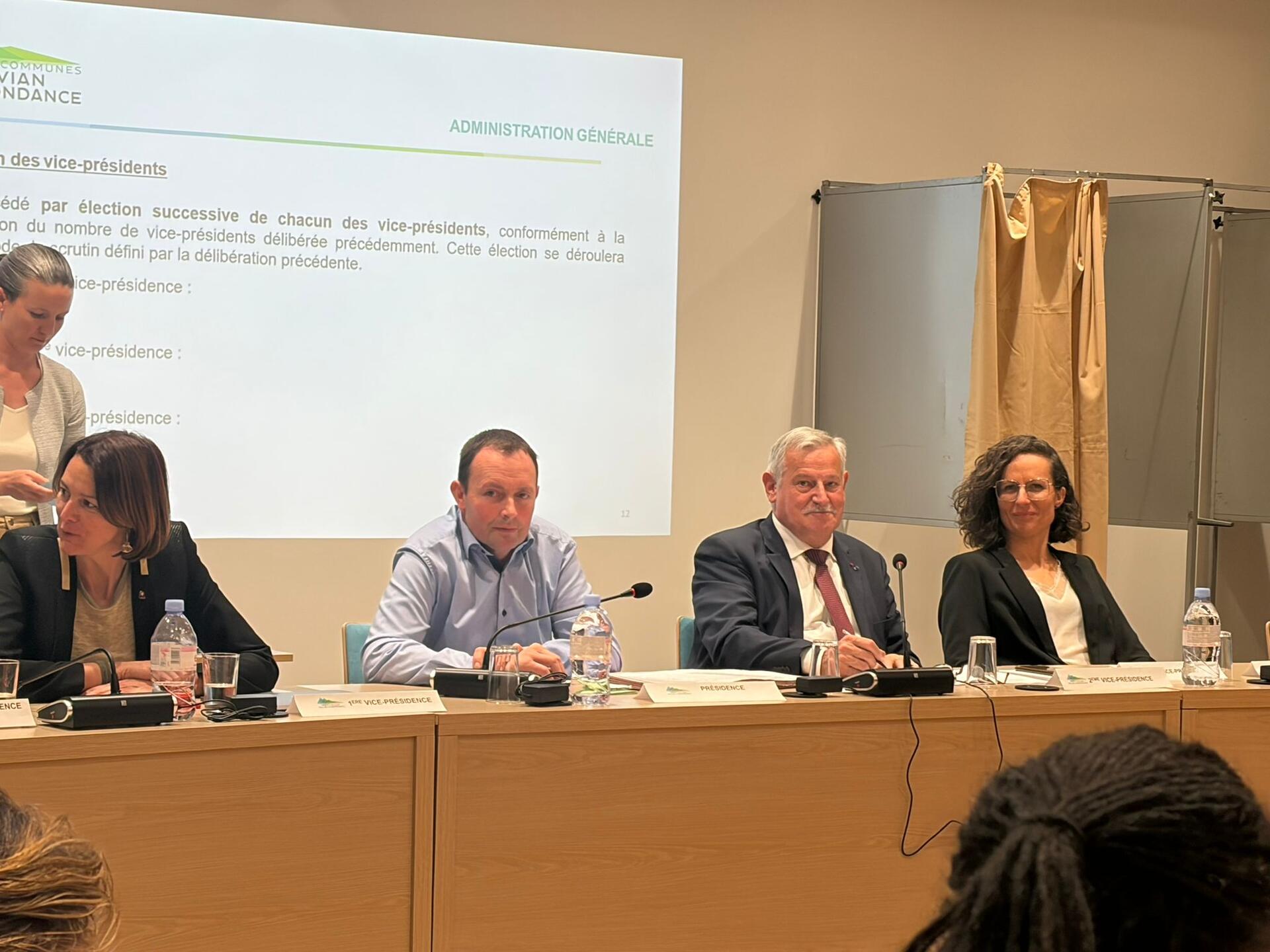 11 vice-présidents entoureront Régis Bened pour former l'exécutif de la collectivité. Le Plateau de Gavot sera bien représenté dans l'intercommunalité avec la présidence et 4 postes de vice-président : Marie-Pierre Girard, Maire de Vinzier, Georges Gourreau, Maire de Champanges, Maxime Juillard, Maire de Féternes, et Florine Wiart à Saint-Paul (6ème VP).