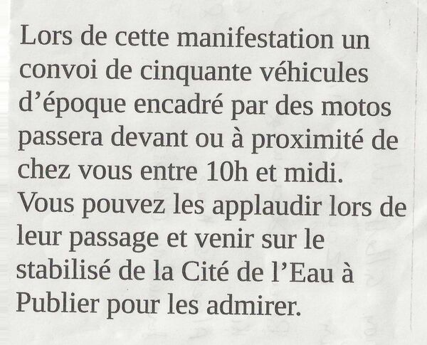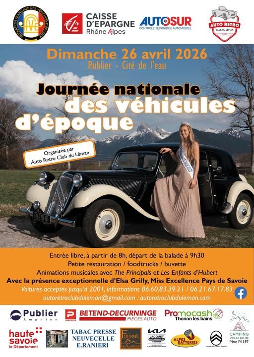 Organisé par Auto Rétro Club du Léman, le 7ème rassemblement des véhicules d’époque se déroulera le dimanche 26 avril à Publier ; parking de la Cité de l'Eau.