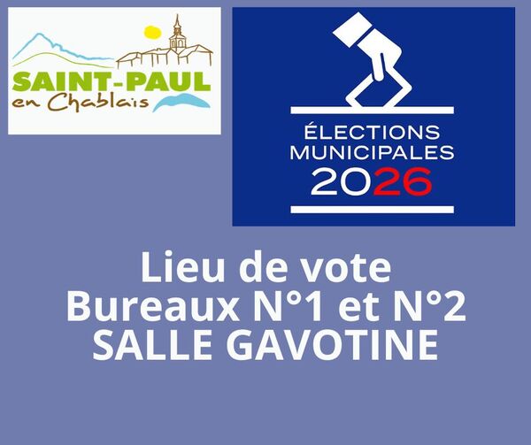 Par arrêté préfectoral du 17 février 2026, les bureaux de vote N°1 et N°2 seront institués à la SALLE GAVOTINE.