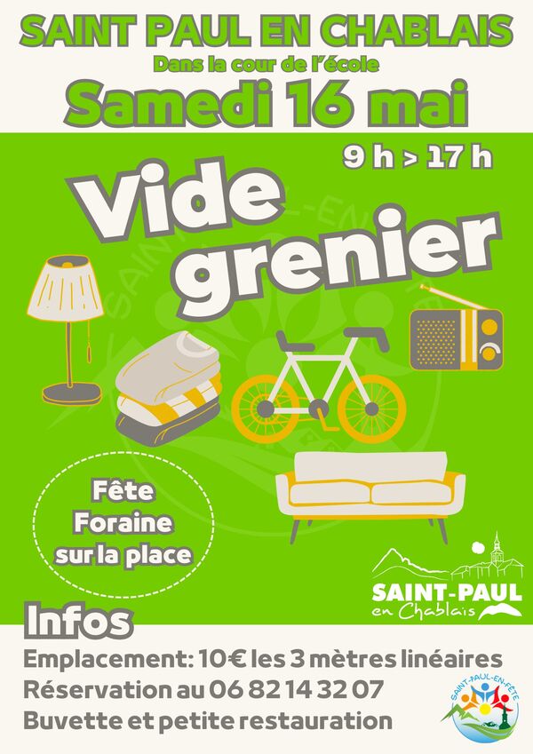 Vide grenier organisé par l'Association Saint-Paul en fête, venez chiner, faire des affaires et profiter de la fête foraine sur la place.