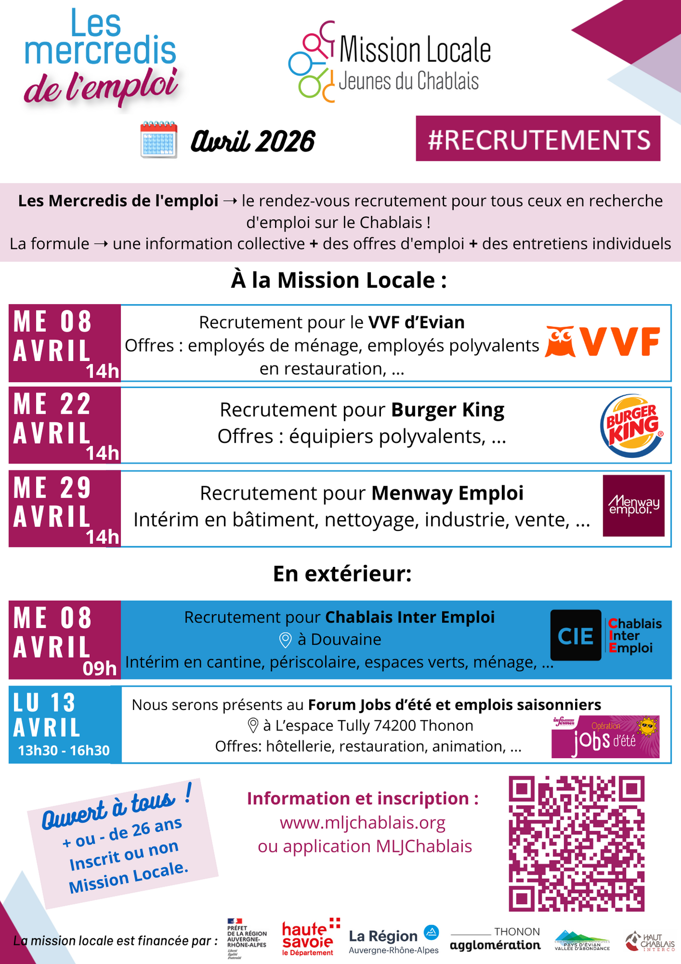 Les Mercredis de l'emploi d'avril 2026 avec La Mission Locale Jeunes du Chablais